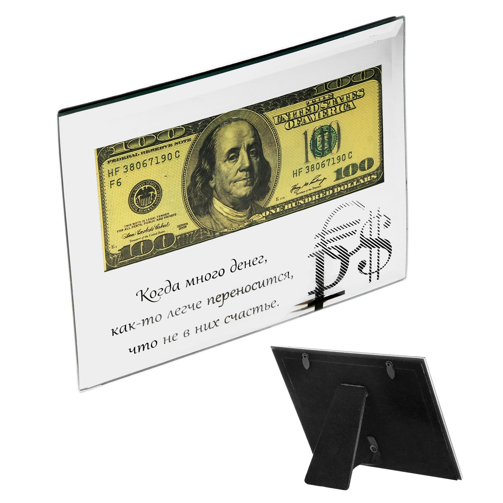 Купюра в зеркальной рамке 100$ Когда много денег..., EK434298