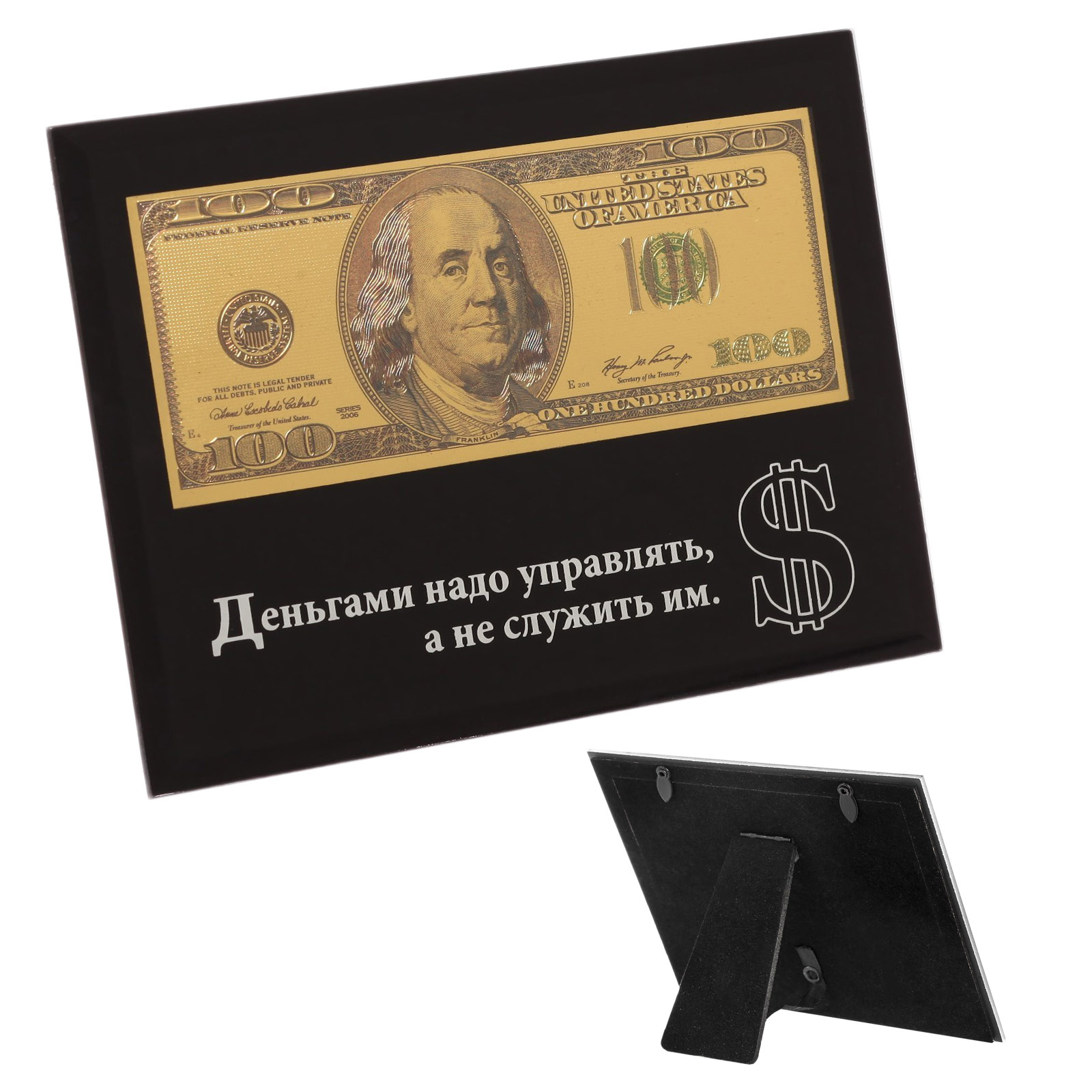 Купюра в зеркальной рамке 100$ Деньгами надо управлять, EK910190